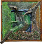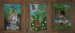2013Opa is ontstaan naar aanleiding van mijn jeugd in Westzaan. Het huis waar mijn opa in woonde en onze woonark ernaast werd omringd door water. Dat was de inspiratiebron voor dit drieluik. De vorm van het frame vormt een "kijkdoos" naar het verleden, heden en de toekomst. Het eerste schilderij met de waterval is het heden.De middelste het verleden met de reiger als symbool voor mijn opa. Het laatste schilderij is de toekomst. Mijn opa is in het midden want zowel het heden als de toekomst worden hierdoor bepaald.