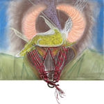 2007Stier. Op het schilderij zie je hoorns gemaakt met pastelkrijt en daartussen ligt een vrouw vanaf de rugzijde te zien evenens van pastelkrijt. Er onder vormen zich de snuit en de brede schouderpartij. De snuit is gemaakt van suede stof die met drie ringen, onderdelen van een fiets, bij elkaar worden gehouden. Hij heeft een wat woest uiterlijk door de vegen bij de ogen en hoorns om er beweging en gevoel in te krijgen.